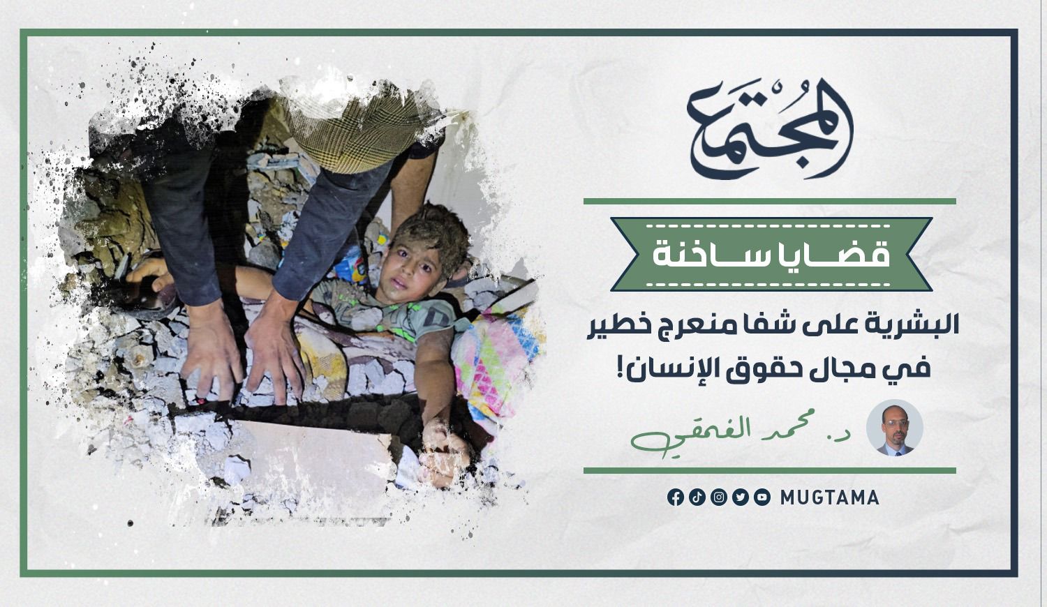 إن البشرية اليوم على شفا منعرج خطير في مجال حقوق الإنسان بعد أن اختلط الحابل بالنابل وضاعت البوصلة وفقدت المرجعية؛ بسبب عنجهية الكيان المحتل وتمرده على المؤسسات الدولية وضربه عرض الحائط القوانين والمواثيق والأعراف الدولية، في ظل عجز كامل عن كبح جماح تمرده، فمتى يستفيق أصحاب العقول الحكيمة؛ قادة ومفكرين ودعاة، في العالم لوقف هذا الانزلاق الخطير الذي سيدمر الحضارة الإنسانية؟!