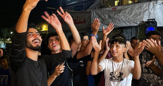 وفي مخيم خانيونس، حيث الدمار يملأ المكان، تحوّلت لحظة الإعلان إلى ما يشبه عيدًا شعبيًا امتزجت فيه دموع الفرح بصور الشهداء التي حملها الناس، وهم يهتفون للحياة بعد عامين من الموت.